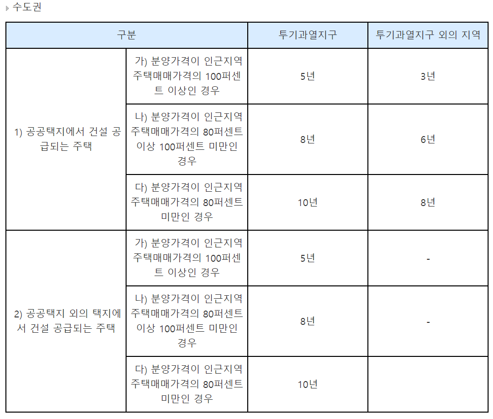 공공택지 뿐만 아니라 민간택지에서도기간의 차이만 있을뿐 내용은 동일하죠.