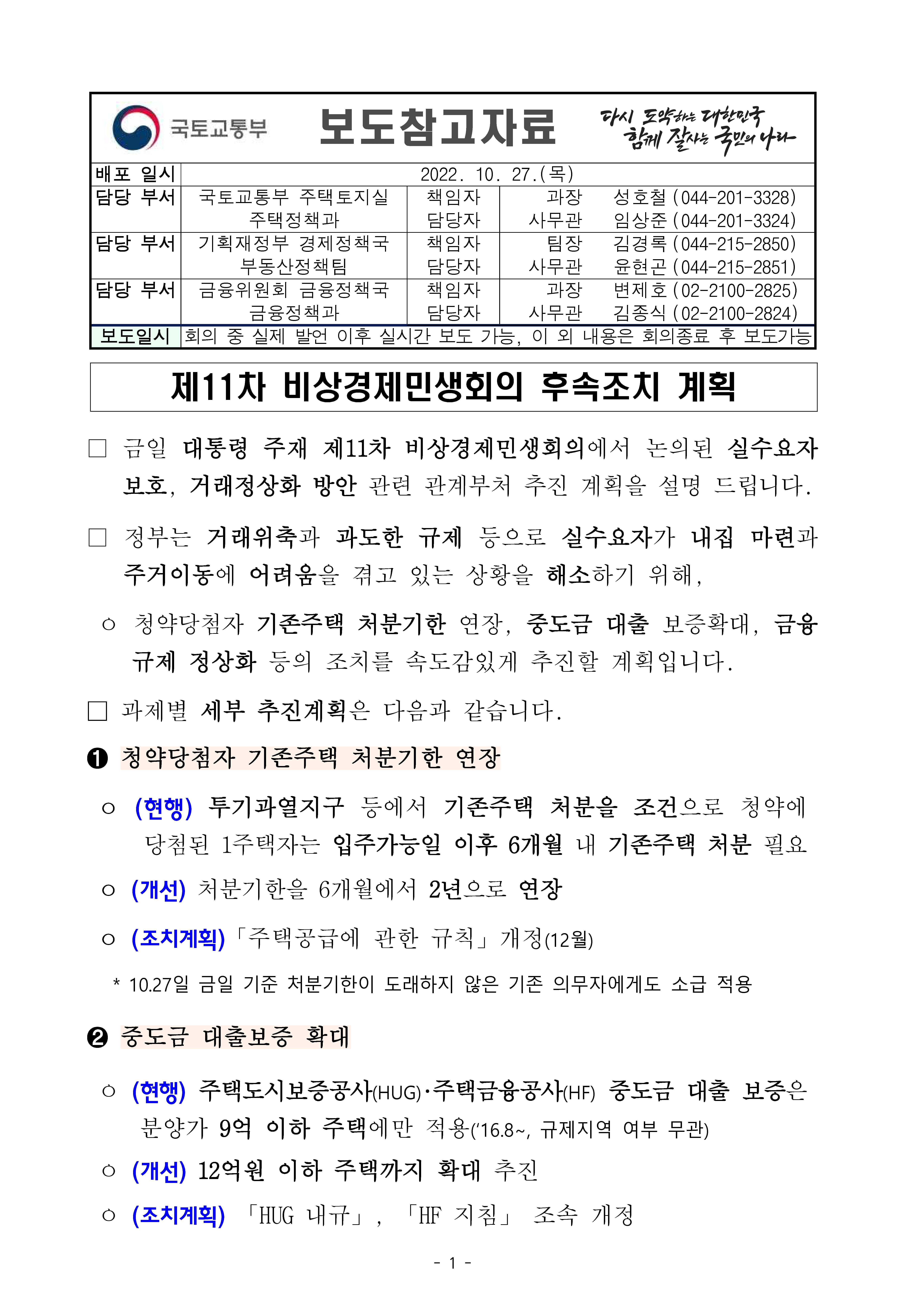 주택에 대한 실수요자 보호, 거래 정상화를 목적으로 추진 계획이 발표되었습니다.