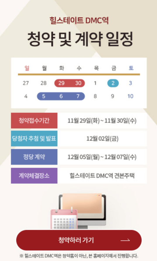 - 청약접수기간 : 11월 29일(화) ~ 30일(수)